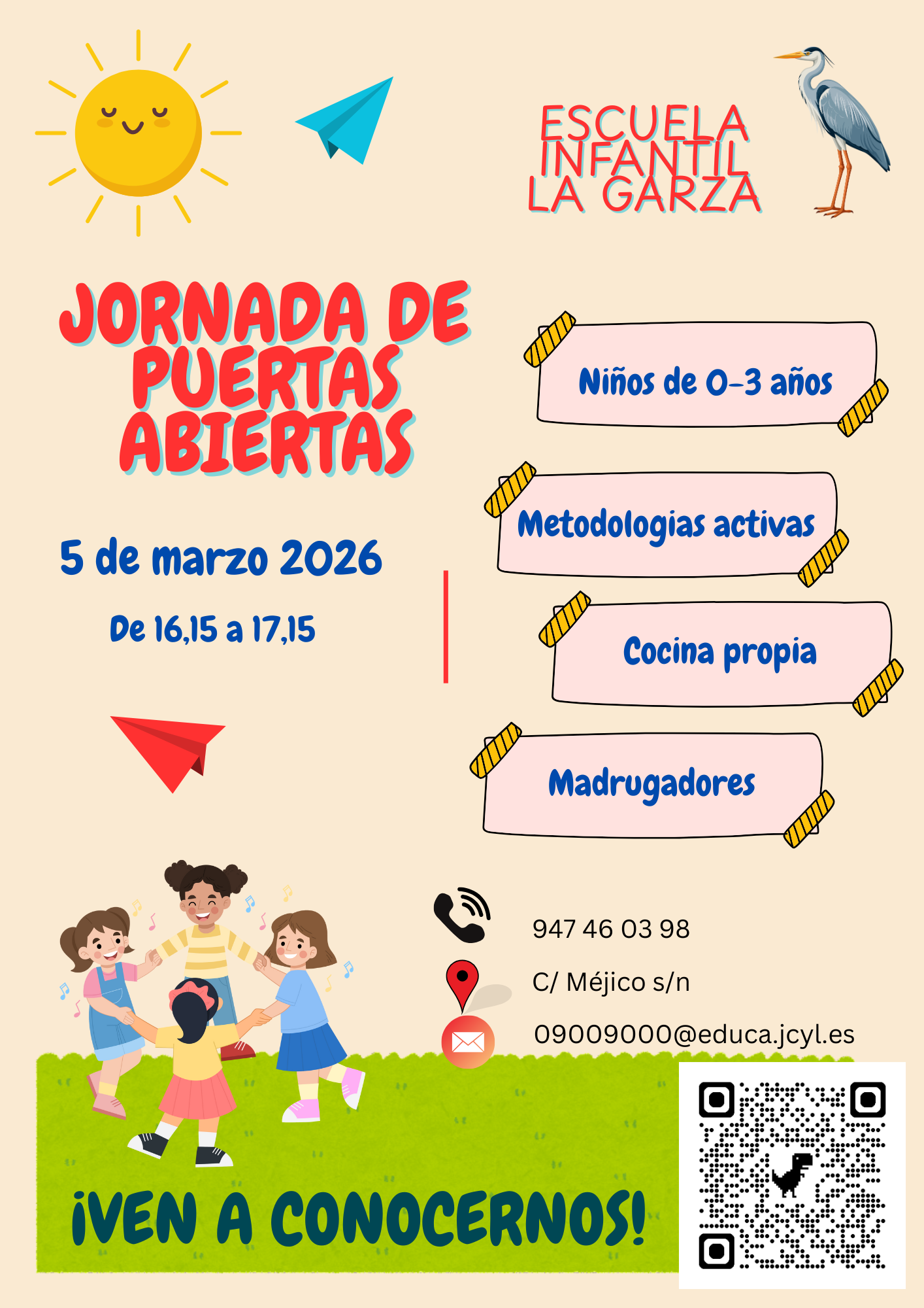 La Escuela Infantil "La Garza" destaca por la experiencia y profesionalidad de su equipo humano, por su comedor ( comida casera elaborada en el propio centro por personal del mismo) y por sus instalaciones (1000 m2 construidos y 2000 m2 de jardín).