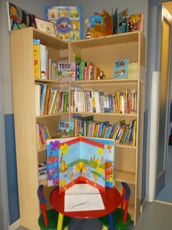 La biblioteca del centro permite de forma cómoda disponer de variedad de cuentos. Cuando se trae o recoge a los niñ@s, los padres junto a sus hij@s, eligen el cuento que quieren llevar a casa y lo registran en un cuaderno. Se puede tener en casa varios días, cuando se devuelve el libro, debe anotarse también en el cuaderno.